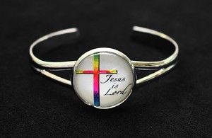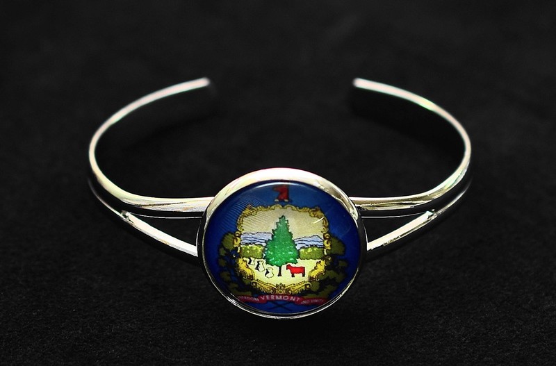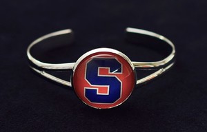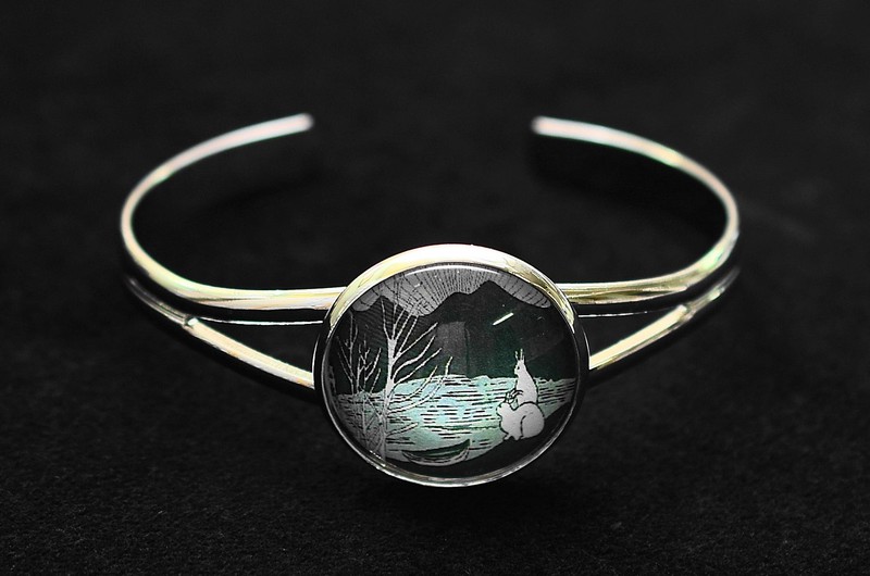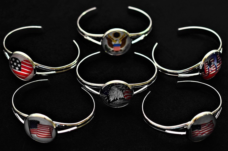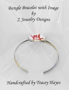 The metal bangle bracelet has elegant lines. It is adorned with a simple bezel. The bracelet costs $10.00.