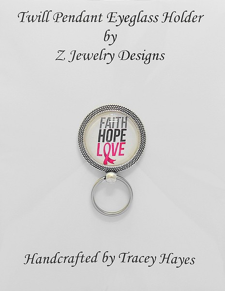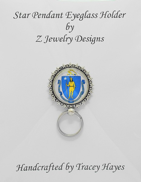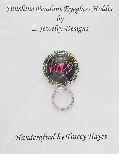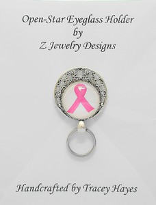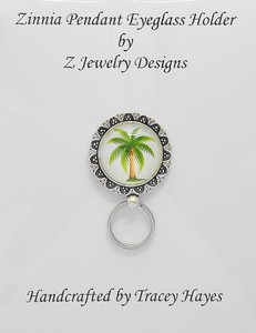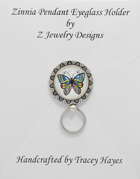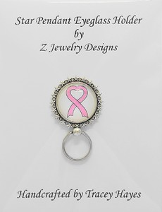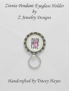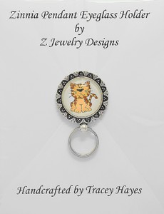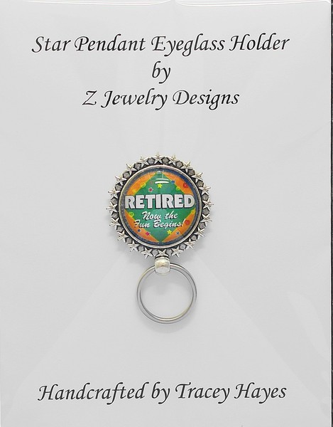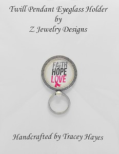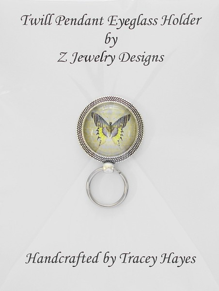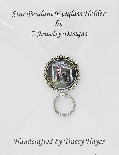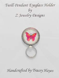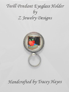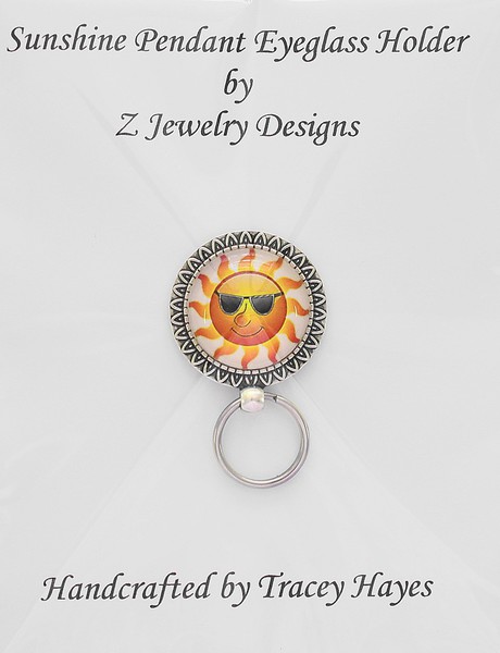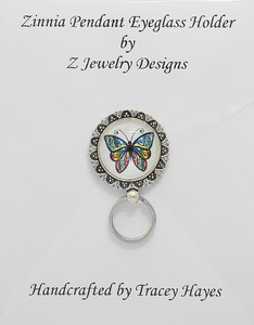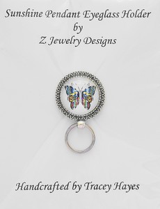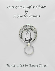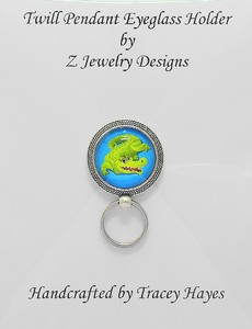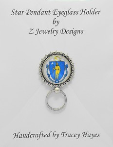 Each eyeglass holder consists of a pendant adorned with a stainless steel ring. Backed with a strong neodymium magnet intended to attract a even stronger magnet, the eyeglass holder stays in place while holding a pair of glasses. Industrial grade glues are used to secure the components. These are great for daily use of readers or as an accessory to hold a pair of sunglasses. All eyeglass holders on this page costs $10.00 each.
