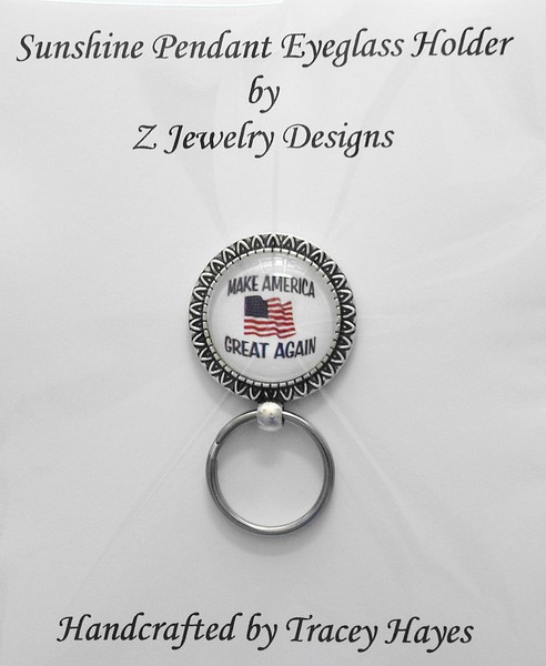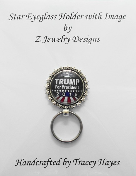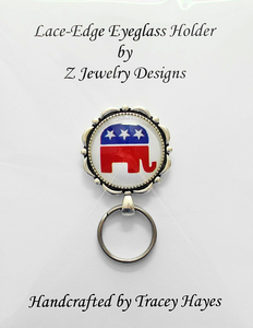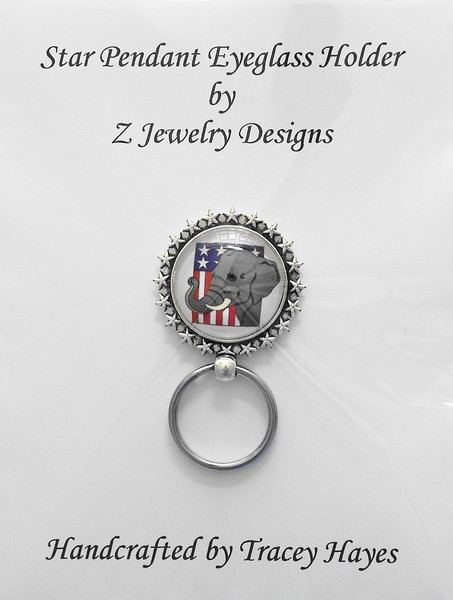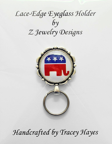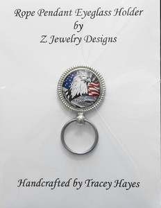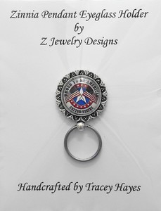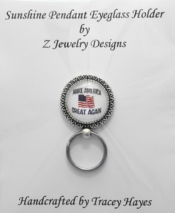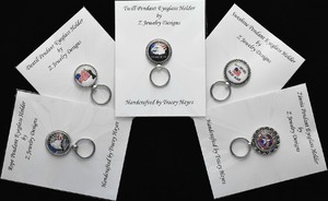 Eyeglass holders are both functional as well as decorative. Some can even represent a cause. It all depends on the image placed under a glass cabochon. They range between $10.00 and $11.00.
