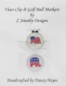The visor clip comes with two interchangeable golf ball markers. The set costs $10.00.