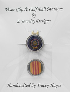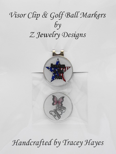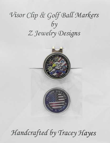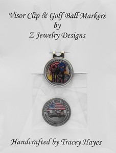 The visor clip comes with two interchangeable golf ball markers. The set costs $10.00.