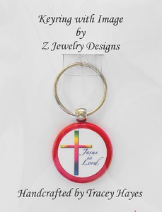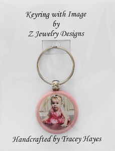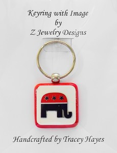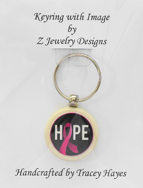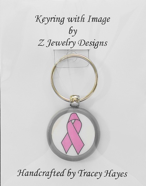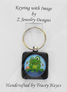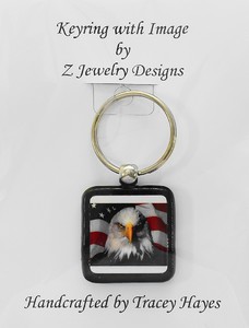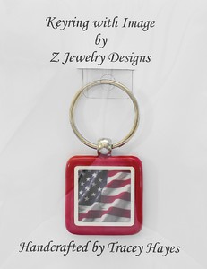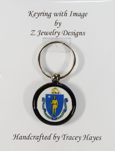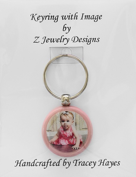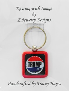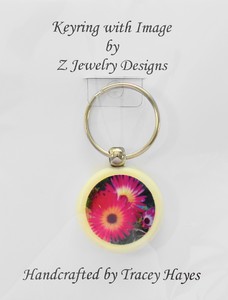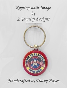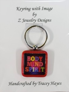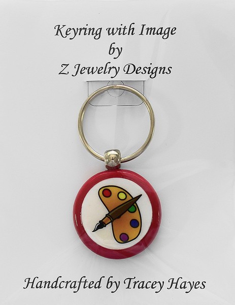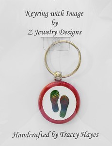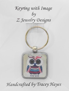 The keyring consists of a stainless steel ring and wooden disc. The disc is painted with two coats of oil-based paint and topped with four coats of non-yellowing UV resistant gloss urethane. Though this keyring is durable and functional it is not recommended for heavy usage. It is perfect for a spare key.